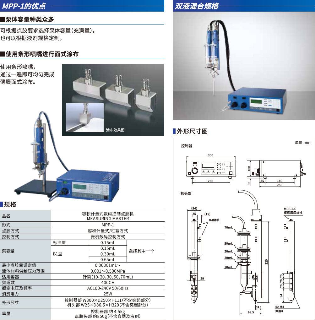 MPP-1<br>對(duì)應(yīng)膠材黏度變化實(shí)現(xiàn)精密的定量點(diǎn)膠,可對(duì)應(yīng)雙液需求