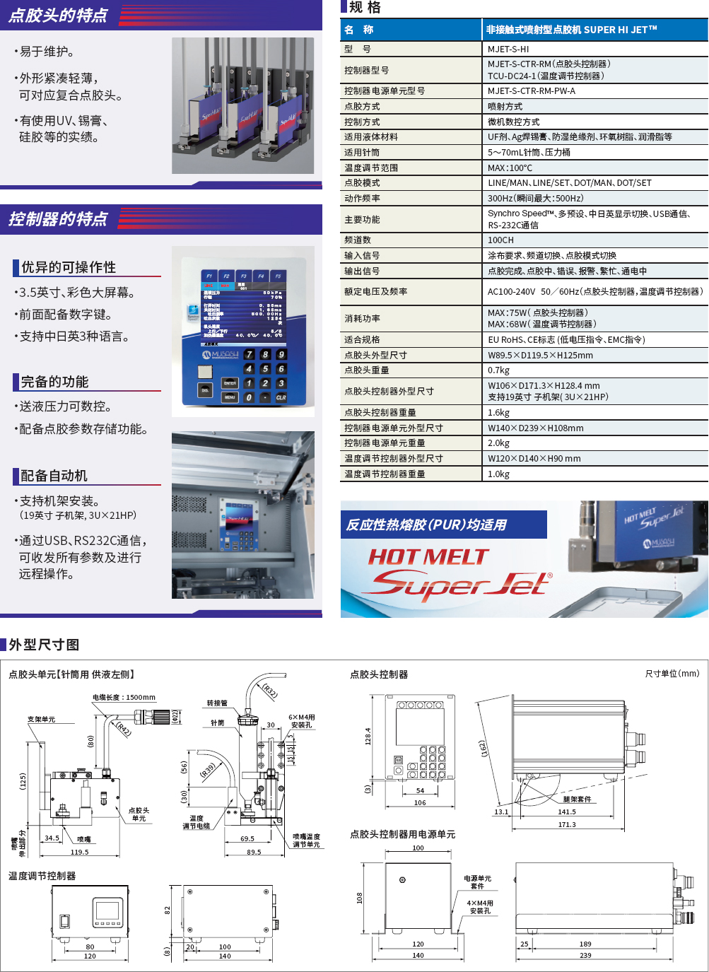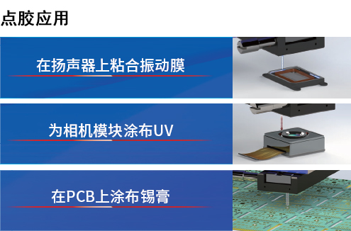 高粘度、非接觸式噴射性點膠機 適用粘度范圍 可對應到1000000mPa's 實現優(yōu)異的落點位置精度 可更換推桿